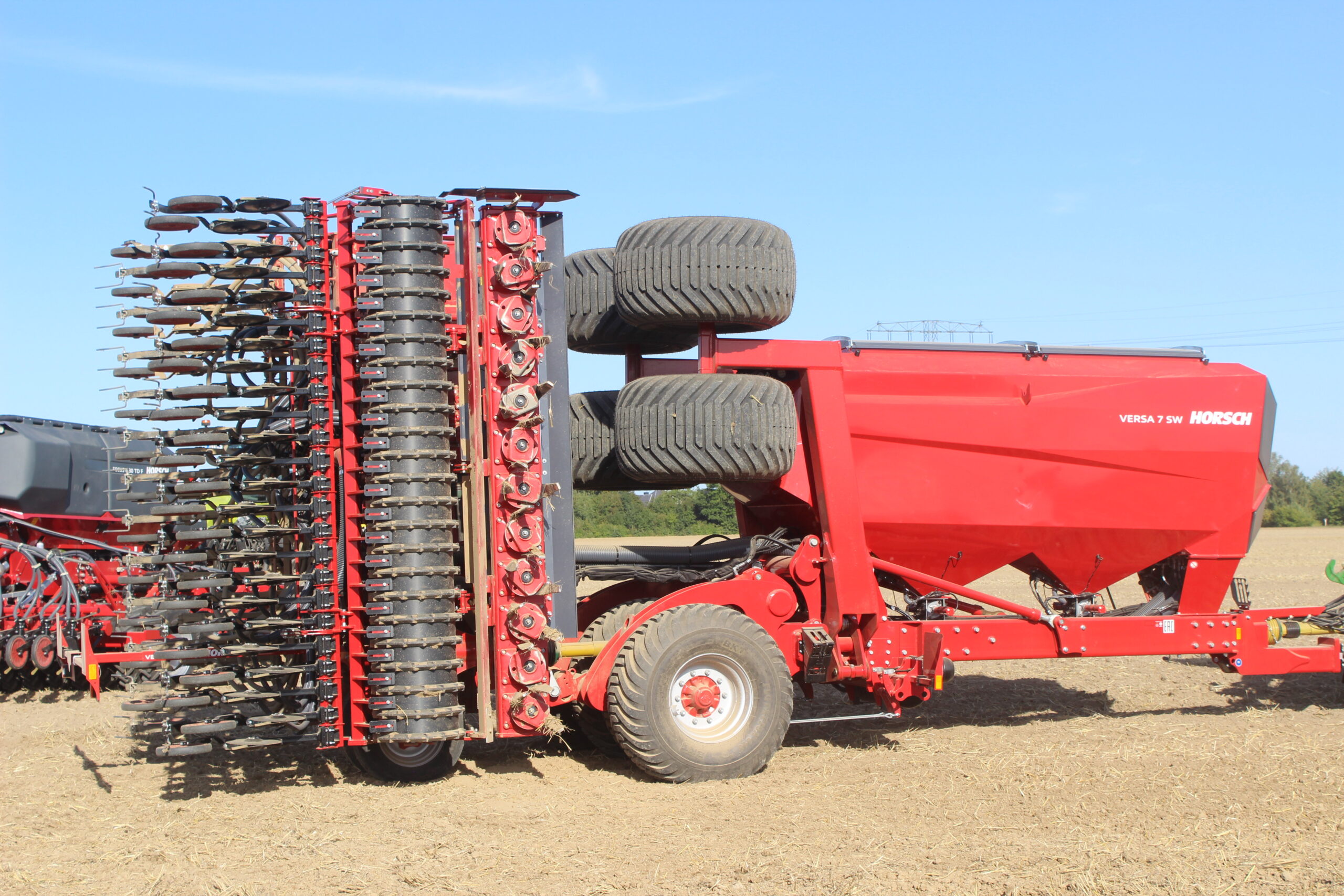 Novinkou u secího stroje Horsch Versa 7 SW je také základní koncepce. Jedná se o samostatnou strojní kombinaci secího vozu a rotačních bran, přičemž každá část je vybavena vlastním podvozkem. Tím odpadá hydraulické přenášení hmotnosti přes pneumatikový pěch pod rotační brány. Díky přídavnému podvozku rotačních bran je při přepravě eliminováno negativní svislé zatížení závěsu.