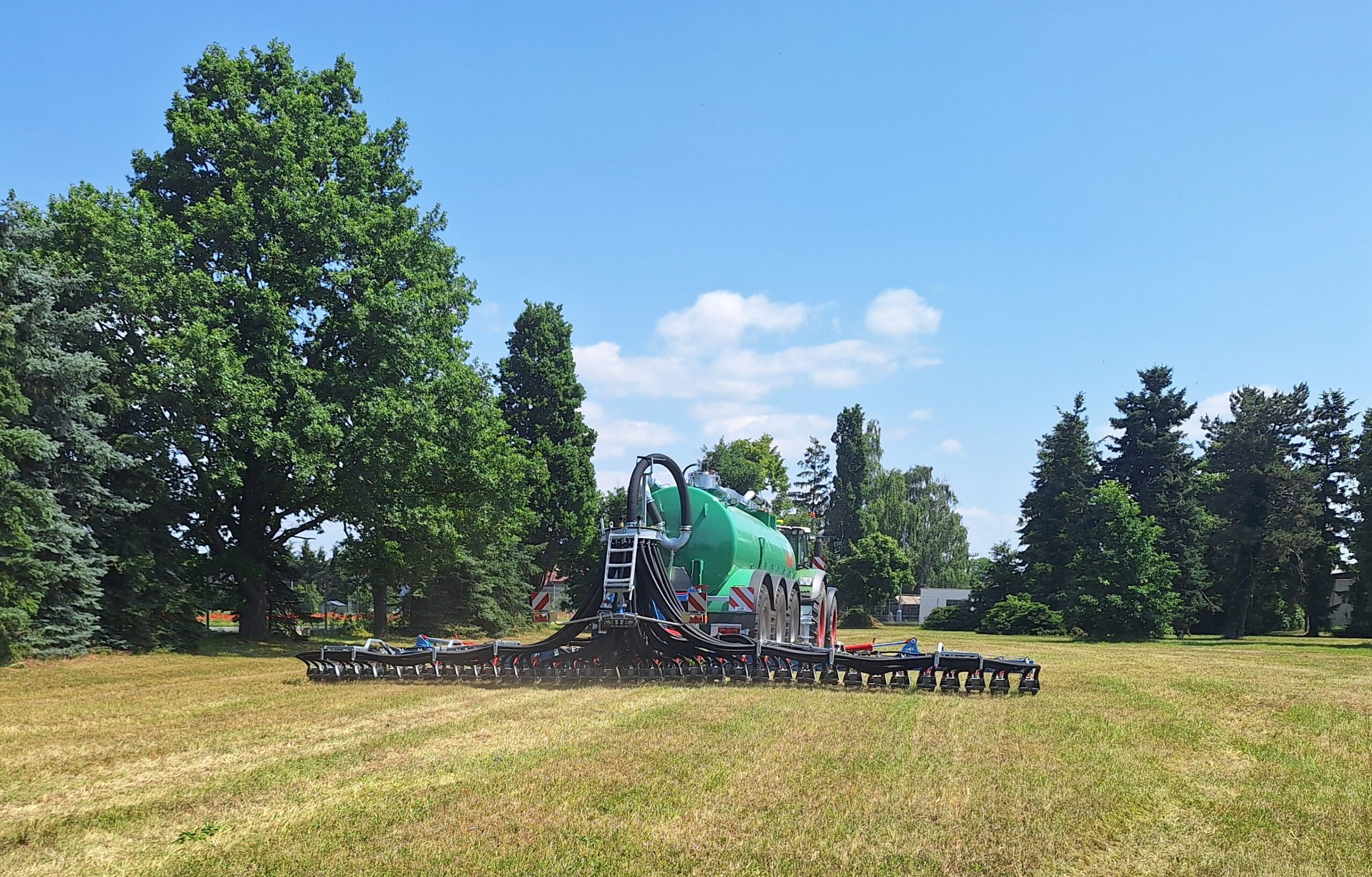 Špičkově vybavené cisterny pro náročné zákazníky reprezentovala aplikační cisterna Wienhoff s dvoukomorovou nádrží o objemu 28 500 l, agregovaná s aplikátorem Duport s pracovním záběrem 12,3 m pro aplikaci do porostu. Vzduchem odpružený podvozek je osazen třemi nápravami – první a třetí řízenou pomocí gyroskopu (na přání může být prostřední náprava hnaná a nebo může být cisterna vybavena do strany vysouvatelnou nápravou pro větší styčnou plochu a menší zhutnění půdy). V přední části cisterny je umístěné horní sací rameno velkého průměru pro nasávání z levé i pravé strany, z úrovně země stejně jako z jiné cisterny. Rychlému nasátí (4 min) pomáhá urychlovací čerpadlo umístěné nahoře v sací hlavě. Ve výbavě cisterny nechybí laboratoř Harvestlab od společnosti John Deere pro on-line rozbor množství prvků v aplikovaném hnojivu. Po zadání potřebných dávek na hektar do počítače v kabině traktoru elektronika zajistí správnou aplikační dávku hnojiva. Stejně tak zajistí konstantní dávku při různé pracovní rychlosti. K další výbavě cisterny patří aplikátor stabilizátoru prvků v půdě. Aplikační čerpadlo je poháněno vlastním hydraulickým okruhem (hydrogenerátor je poháněn vývodovým hřídelem traktoru). Aplikátor Duport je rozdělen na sedm vypínatelných sekcí. Cisterna může díky své výbavě plnit úkoly i v systémech precizního zemědělství včetně aplikace podle předpisových map. Opakem Top modelu byla ekonomická varianta, kterou představovala aplikační cisterna Wienhoff 17 300 s botkovým aplikátorem Bomech o záběru 15 m. I přes jednoduchou výbavu se cisterna může pochlubit rychlým sáním, vysokým výkonem a přesnou aplikací.*