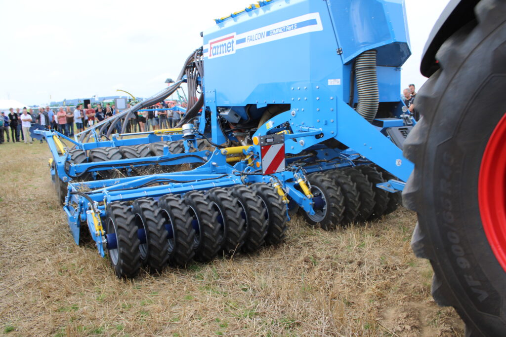 Společnost Farmet a. s. předvedla modulární secí stroj Falcon Compact Fert S. Samonosná násypka může být rozdělena v poměru 40:60 pro hnojivo a osivo s tím, že část určená pro osivo může být dále rozdělena na dvě části. Jedním přejezdem tak lze zapravit hnojivo a zasít dvě různá osiva do různých řádků i hloubek. Falcon lze také vybavit mikro přísevem.