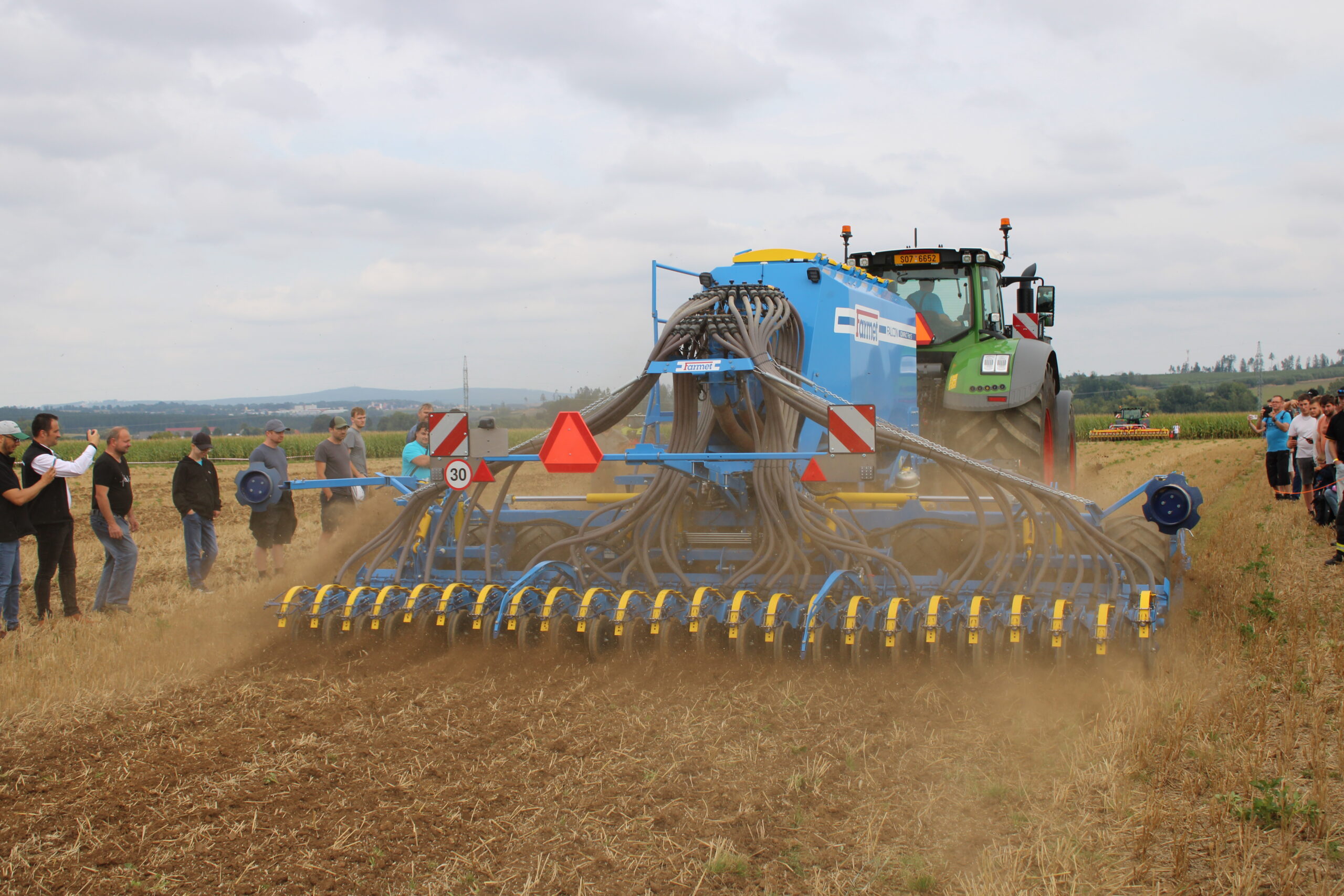 Společnost Farmet a. s. předvedla modulární secí stroj Falcon Compact Fert S. Samonosná násypka může být rozdělena v poměru 40:60 pro hnojivo a osivo s tím, že část určená pro osivo může být dále rozdělena na dvě části. Jedním přejezdem tak lze zapravit hnojivo a zasít dvě různá osiva do různých řádků i hloubek. Falcon lze také vybavit mikro přísevem.