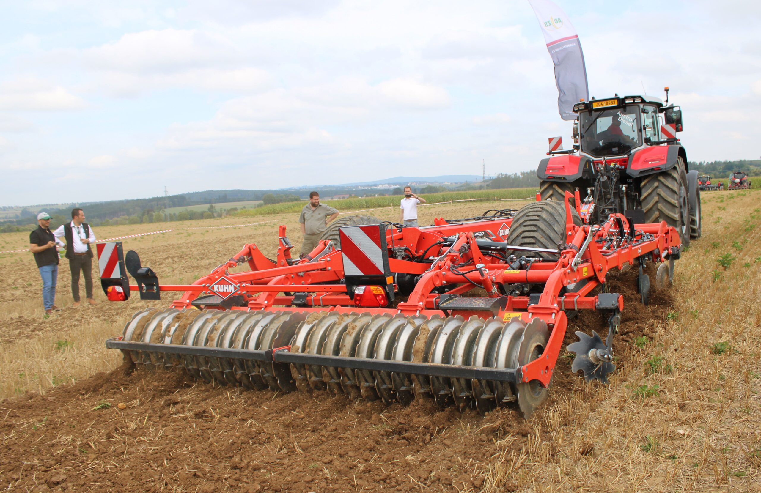 Společnost AGRALL zemědělská technika a. s. předvedla talířový podmítač Vӓderstad Carrier 625 XL s pracovním záběrem 6,1 m. Carrier je talířový podmítač používaný pro rychlé základní zpracování půdy a přípravu seťového lůžka. Široká škála předního nářadí, talířů a pěchů, umožňuje zvládat rozmanité úkoly, od velmi mělkého po hlubší zpracování půdy. Druhým talířovým podmítačem dne byl Catros XL 5003-2TS výrobce Amazone, který divákům představila společnost AGROTEC a. s. Polonesený podmítač s pracovním záběrem 5 m lze doplnit výsevním ústrojím pro přísev meziplodin. Německý výrobce zemědělské techniky Landmaschinenfabrik Köckerling GmbH & Co.KG zvolil pro předvádění šestimetrový talířový podmítač Rebell -classic- 600T. Talířový podmítač druhé generace je vhodný pro podmítku, ošetření podmítky, zapravení menšího množství chlévského hnoje nebo digestátu, pro předseťovou přípravu, popřípadě urovnání hrubé brázdy. Ze sousedního Německa pochází i další předvedený šestimetrový talířový podmítač, v tomto případě značky Lemken. Model Rubin 10 TF/600, který představila společnost LEMKEN CZECH s. r. o., je talířový podmítač nové generace, který prošel některými konstrukčními změnami, od vlastního zavěšení až po sled jednotlivých sekcí. Velkou předností podmítače je schopnost pracovat i v porostech vysokých jeden metr.  Firma POL-AGRO maszyny a. s. návštěvníkům předvedla těžký talířový podmítač polského výrobce ROL/EX, model BTHC 500 s pracovním záběrem 5 m. Podmítač lze doplnit secím strojem pro přísev meziplodin vlastní konstrukce. Tak trochu jiná byla souprava, v níž má talířový stroj za úkol zapravit kejdu či digestát. Společnost P & L, spol. s r. o., předvedla talířový podmítač v agregaci se samojízdným aplikátorem kejdy. Aplikátor Vredo 19500V byl doplněn šestimetrovým talířovým podmítačem Volmer pro efektivní a cílené zapravení tekutých hnojiv přímo do půdy. Předvedený podmítač je konstrukčně jednoduchý stroj s robustní a odolnou konstrukcí, odpovídající způsobu nasazení. Firma AGROCENTRUM ZS přijela do Kamene představit kombinovaný kypřič Kuhn Performer 4000 s pracovním záběrem 4 m. Talířová sekce může pracovat do hloubky 10 cm, radlice prokypří půdu až do 35 cm. Při světlé výšce rámu 85 cm zaklopí Performer meziplodiny, hnůj či strniště po zrnové kukuřici.